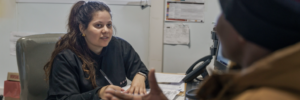 WHO / Barry ChristiansonDuring a consultation at Site B “Ubuntu” Clinic in Khayelitsha, Cape...