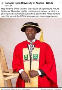 The Dean of the Faculty of Agriculture at the National Open University of Nigeria...