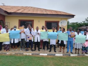Resident doctors at the University of Ilorin Teaching Hospital (UITH), Ilorin, Kwara State, on...