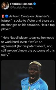 Napoli manager Antonio Conte has provided an update on Victor Osimhen, saying there have...