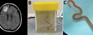 The worm was about 8cm long and was wriggling [Courtesy of ANU] A live...