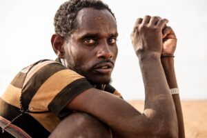 Omar, an Ethiopian migrant, is treated for dehydration and exhaustion by IOM’s Mobile Unit...