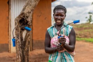 Ropani Harriet from South Sudan holds a repaired solar lantern from IOM’s E-waste initiative...